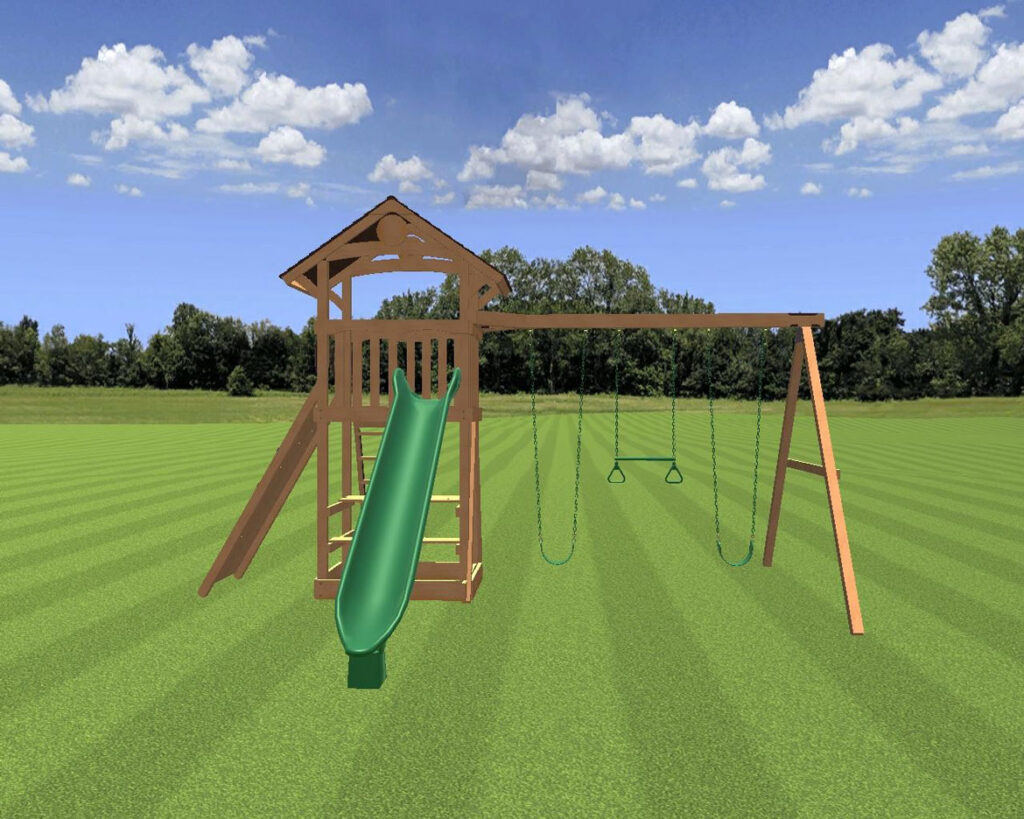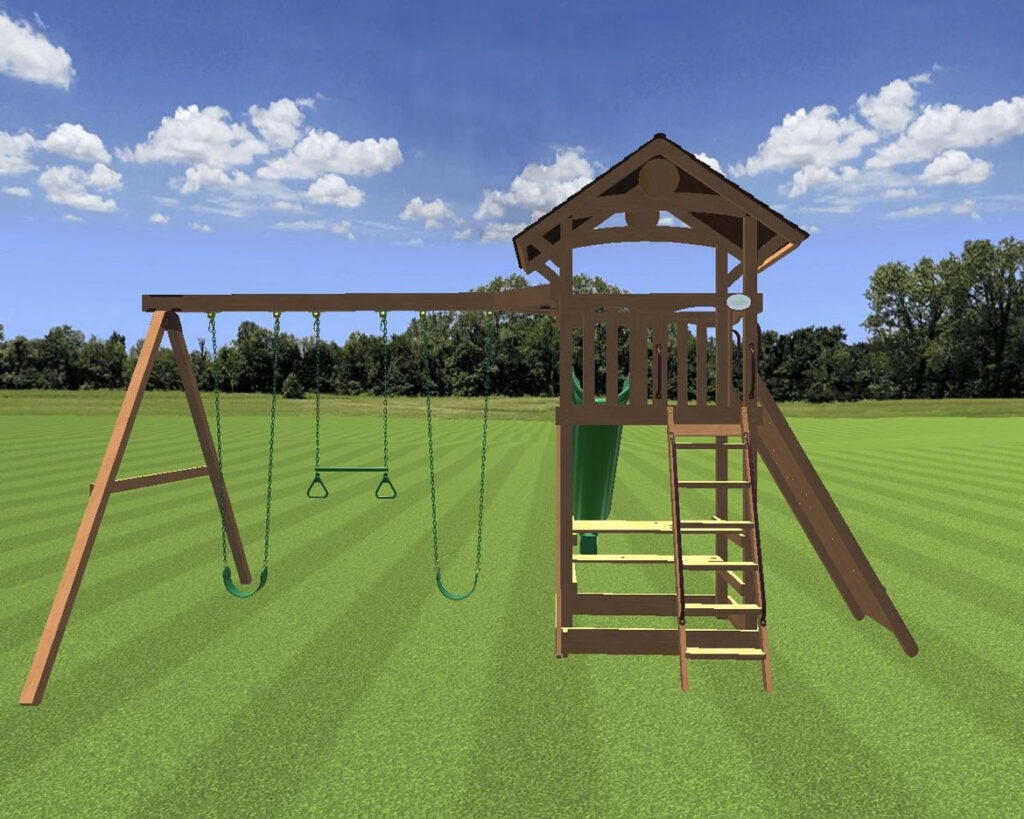 The Olympian Outlook 1 will create lasting memories for you and your family. The fort structure has a 6' high deck with over 20 sq. ft. of play space. This play structure also includes wood roof, 3 position 9' swing beam, 2 – belt swings, trapeze bar, 6' rock wall, picnic table, and 12' rocket slide. Summit Outlook play sets include our exclusive limited lifetime warranty on all wood, metal, and hardware components.